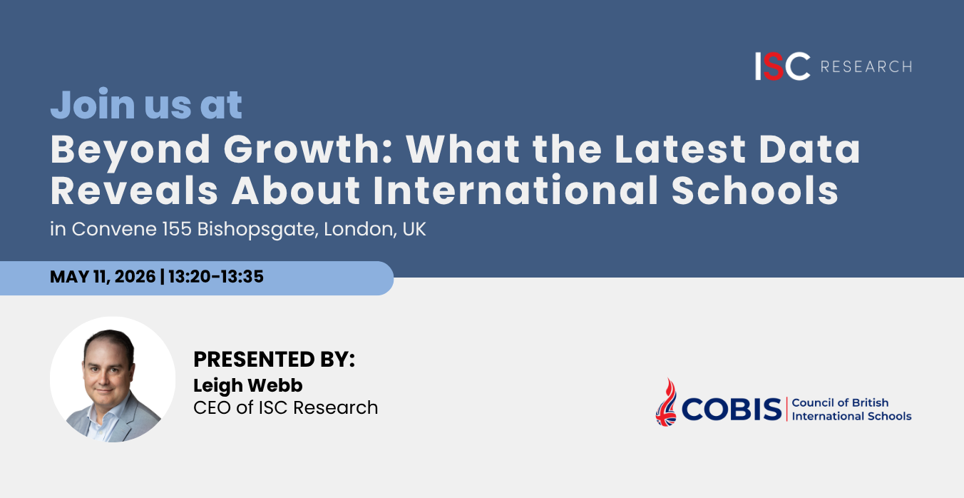 If you’re attending the 44th COBIS Annual Conference 2026, join ISC Research for a data-led session exploring the latest developments shaping the global international schools market.